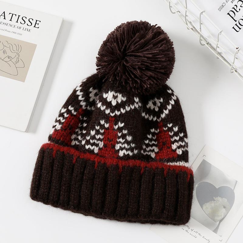 Новая ретро-жаккардовая шапка для женщин на осень и зиму, защита ушей, защита от холода, шапка-повязка на голову, вязаная шапка с маленьким меховым помпоном и лицом, M(56-58cm)