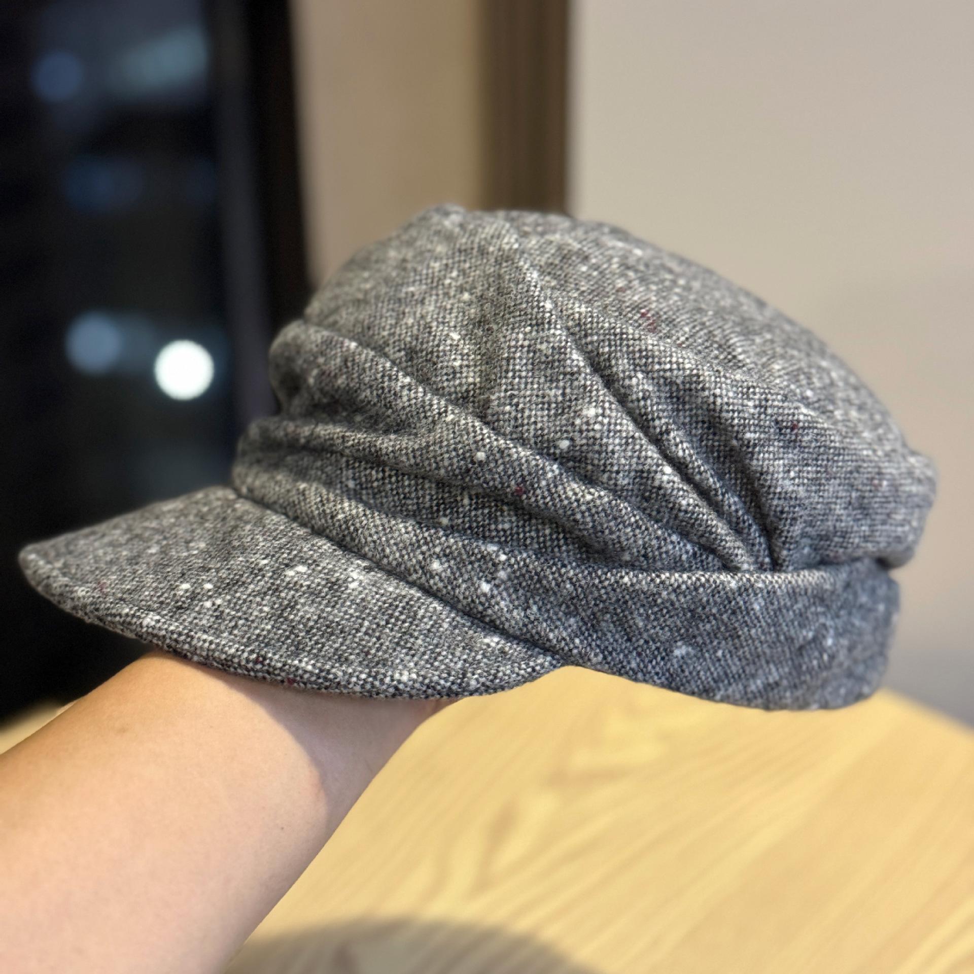Новая ретро плиссированная кепка-ньюсбой из чистой шерсти для женщин на осень и зиму, теплая и универсальная кепка с козырьком, подчеркивающая лицо, маленькая кепка-ньюсбой, тренд Adjustable