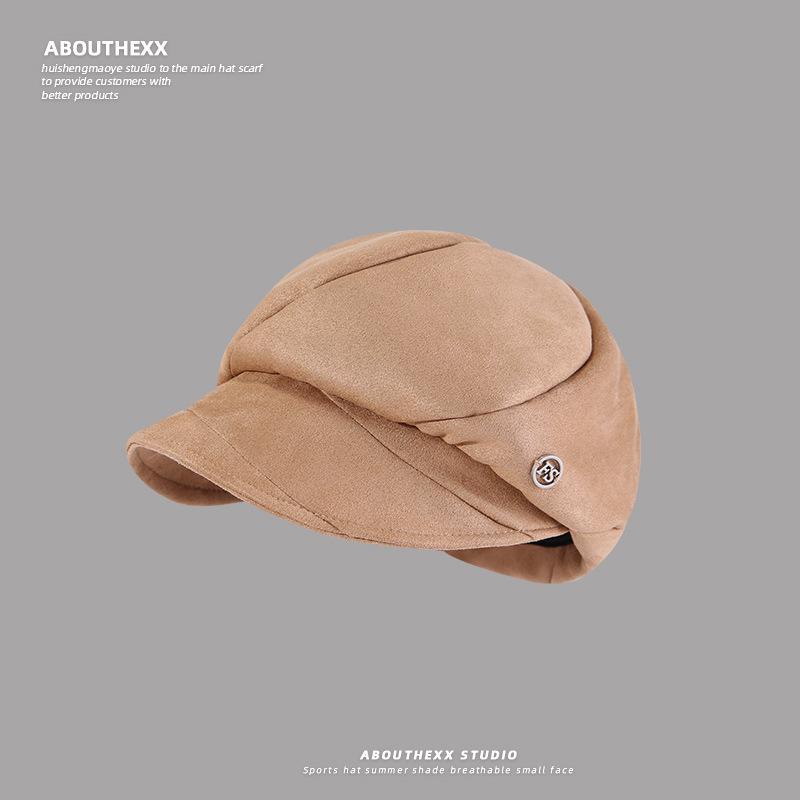 Новая ретро плиссированная шляпа женская осенне-зимняя берет большая окружность головы зрительно уменьшающая лицо кепка восьмиугольная шляпа художника M(56-58cm)