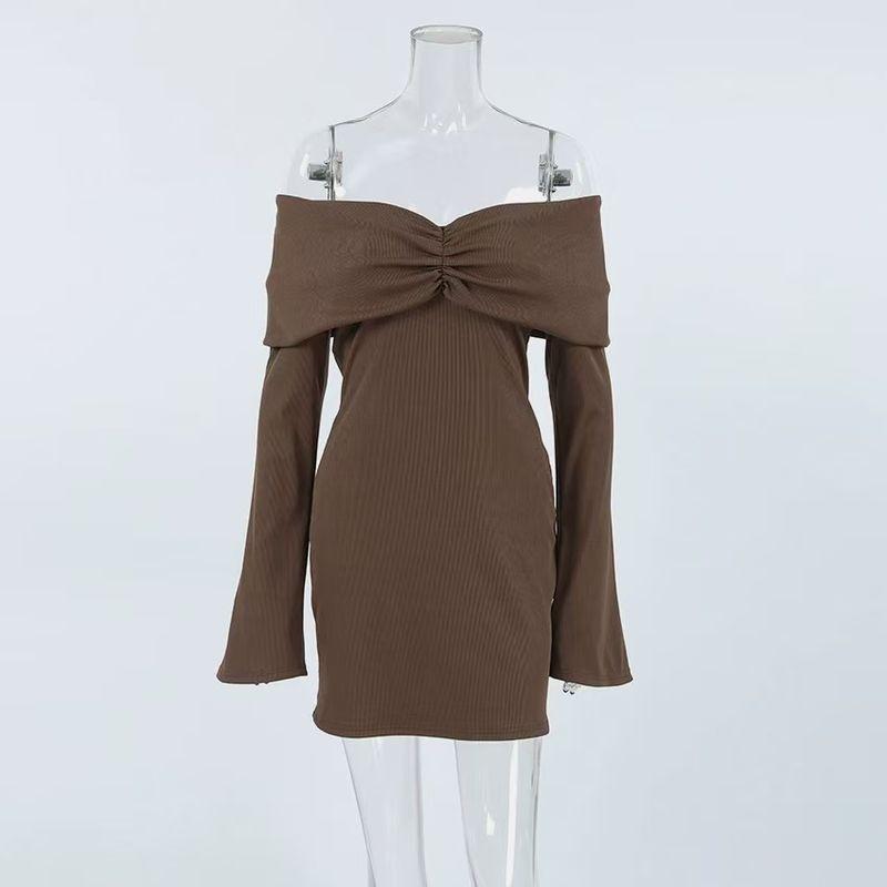 Новая русская мода Ретро Коричневое Приталенное Сексуальное платье с V-образным вырезом и длинным рукавом Сексуальное платье с V-образным вырезом Brown L