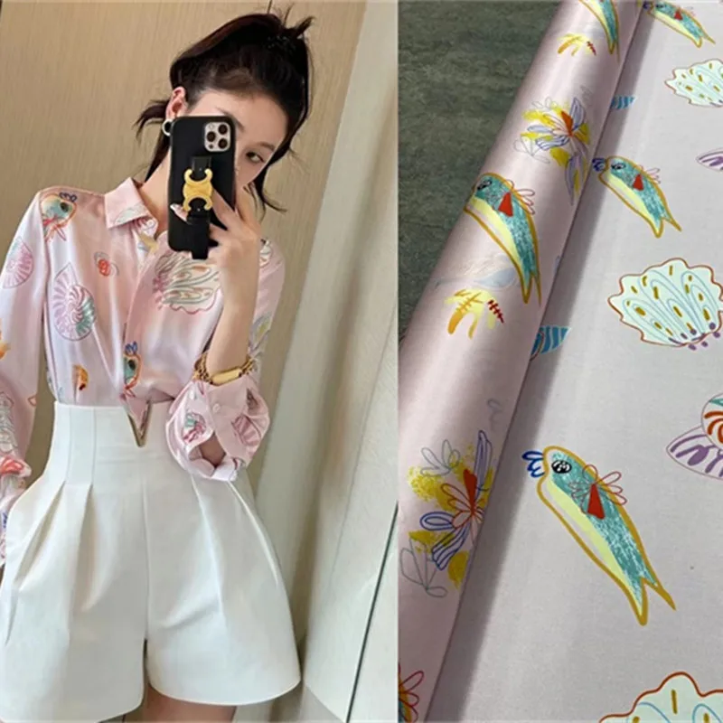 Новая свежая и Нежная розовая Нижняя Яркая Цветная печать саржевая ткань женская шелковая ткань дизайнерская швейная ткань