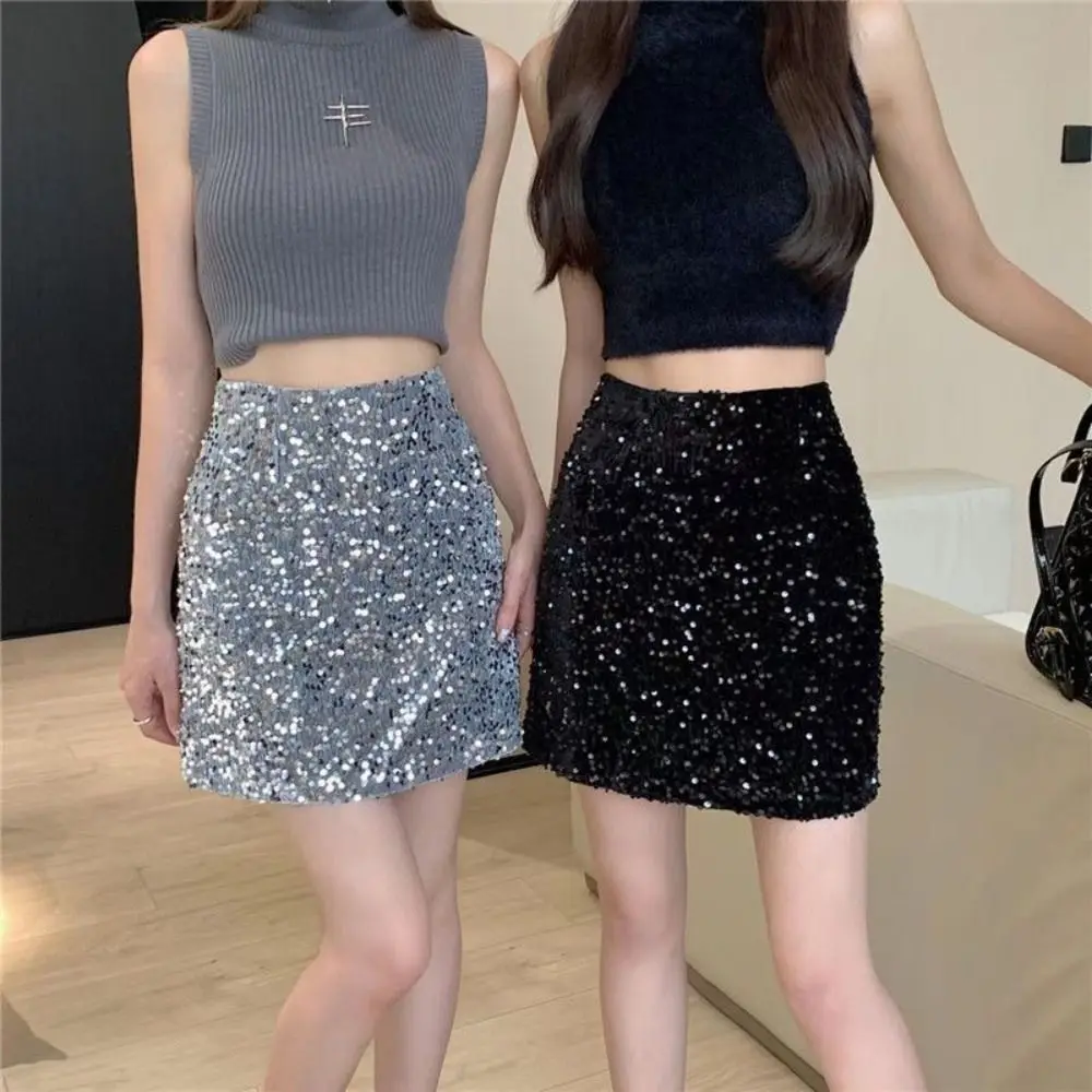 Классическая блестящая юбка с пайетками для похудения, вечерние облегающие мини-юбки с высокой талией, женская юбка трапециевидной формы