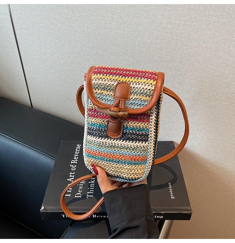 Новая соломенная плетеная радужная сумка для мобильного телефона, модная наплечная сумка кроссбоди в стиле пляжного отдыха, женская сумка