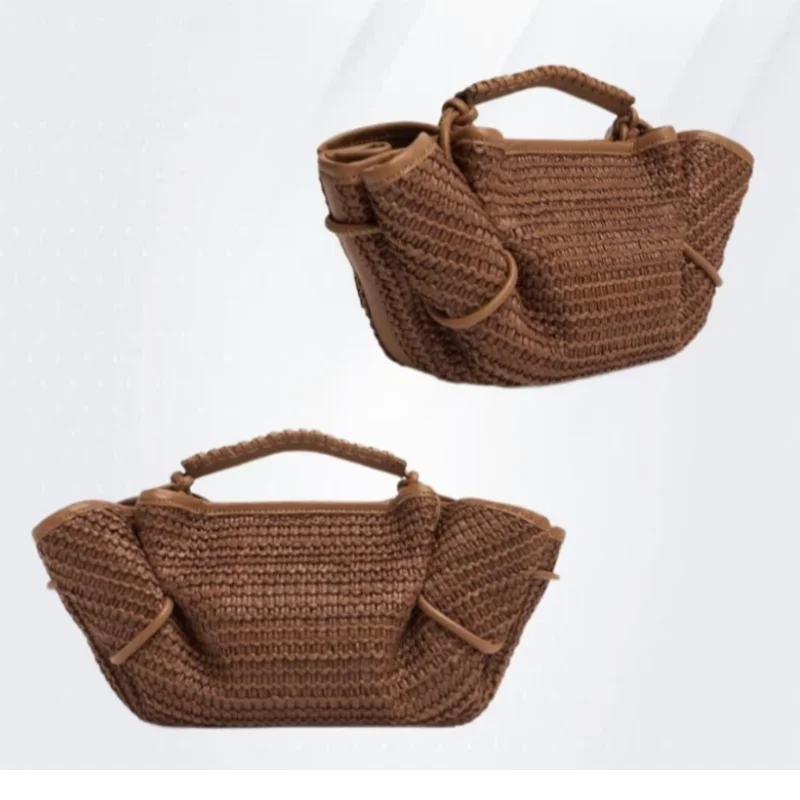 Новая соломенная сумка из рафии, брендовая сумка через плечо, женская сумка, плиссированная сумка, роскошная кожаная сумка для пельменей, кошелек для хранения