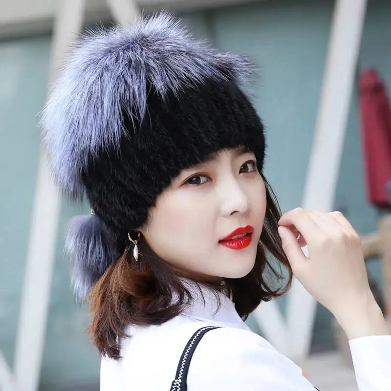 Новая соломенная шапка из норкового лисьего меха, детская зимняя шапка из норкового меха, кожаная тканая шапка для защиты ушей, теплая корейская версия, универсальная