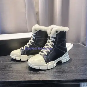 boots women fur ladies winter warm ankle for snow shoes style round-toe slip on female flock boot, Black