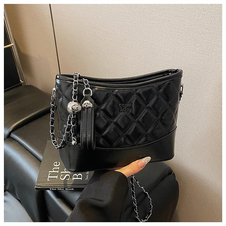 Новая сумка большой вместимости Женская Сэн Моэ модная ромбовидная цепочка На плечо через плечо женская сумка Простая сумка подмышку чёрный
