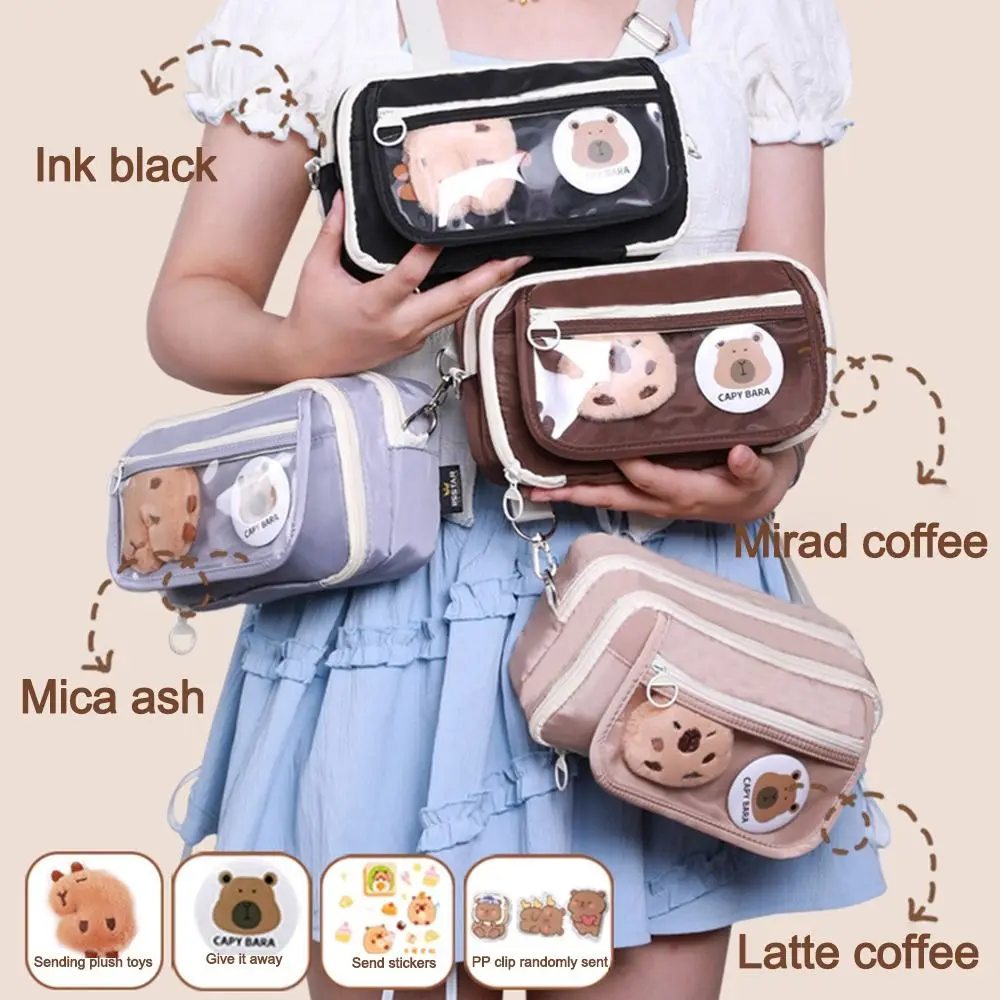 Новая сумка для ручек capyтеперь, большая емкость, 9 слоев, канцелярская сумка с брошками, наклейками, зажимами, карандаш через плечо, женский