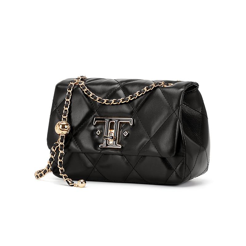 Новая сумка-замок из первого слоя кожи, сумка-мессенджер через плечо, популярная маленькая квадратная сумка на бриллиантовой цепочке, женская сумка 21*8*15CM чёрный