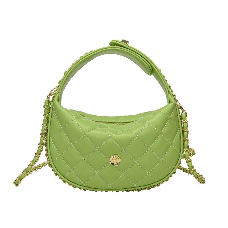 Новая сумка-полумесяц через плечо однотонная простая текстура цепочка легкая роскошная сумочка модная модная бриллиантовая сумка one size fits all зелёный