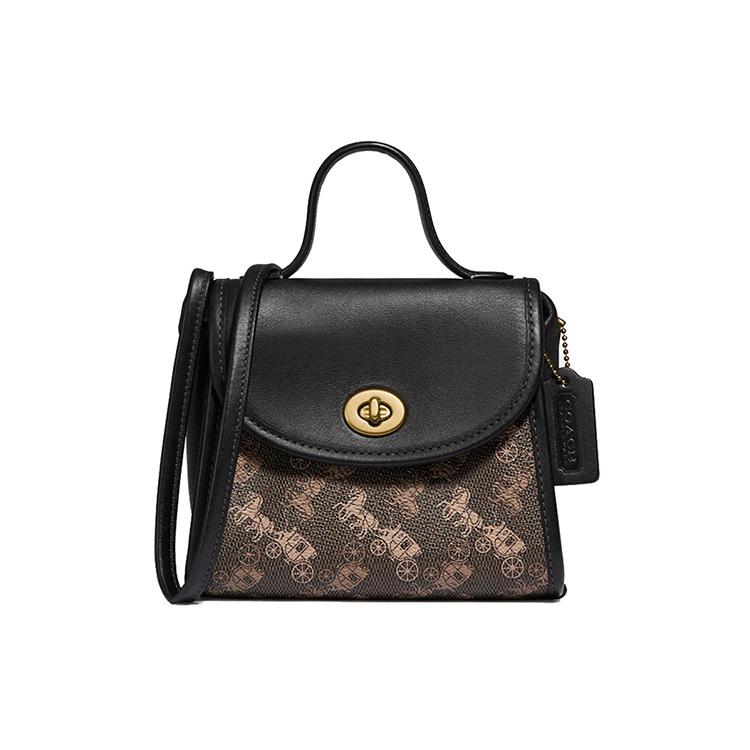Новая сумка COACH Turnlock из канвы с покрытием и телячьей кожи, Сумка через плечо, Сумка кроссбоди Маленькая женская коричневая и черная 3002-B4AA8 16.0*7.1*13.0CM
