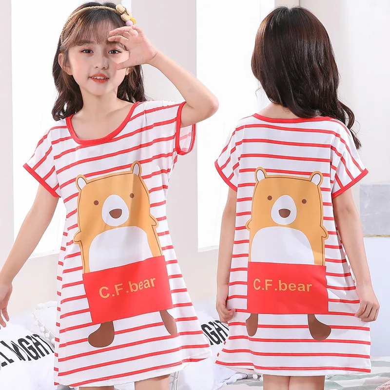 Новая трендовая хлопковая ночная рубашка, пижамные платья для маленьких девочек, детская летняя ночная рубашка с мультяшным рисунком, дома...