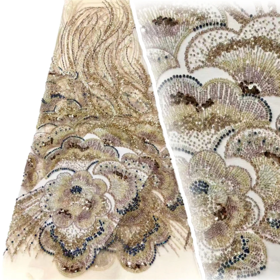 Новая французская сетчатая кружевная ткань с бисером 2026, темно-синяя африканская нигерийская тюль с блестками, кружевная ткань, свадебное платье и вечернее платье 1815