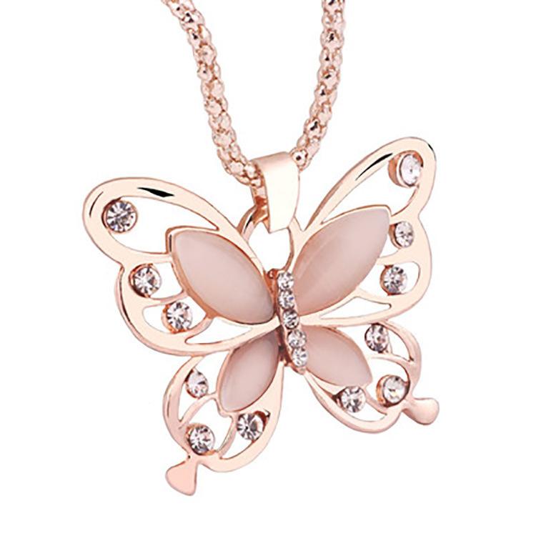 Новая цепочка для свитера, ожерелье-бабочка, ажурное женское ожерелье с кошачьим глазом и бриллиантами, универсальное ожерелье для одежды