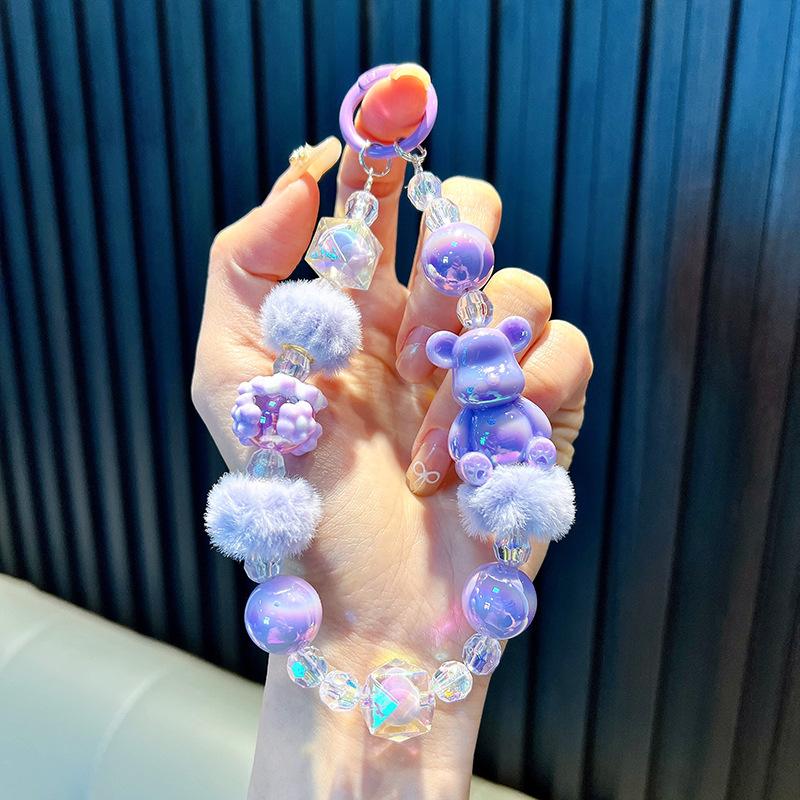 Новая цепочка для телефона из бисера с помпоном в виде медведя, брелок, изысканный подвес для сумки, брелок для автомобиля, маленький подарок фиолетовый