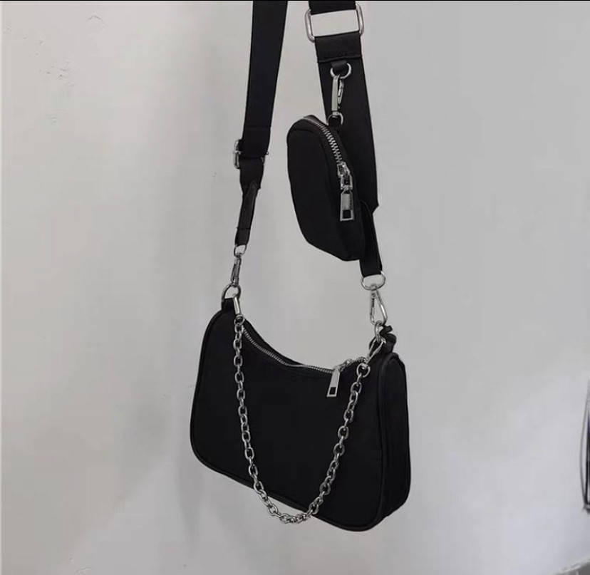 Новая чёрная нейлоновая сумка с короткой и длинной ручкой через плечо, Черный