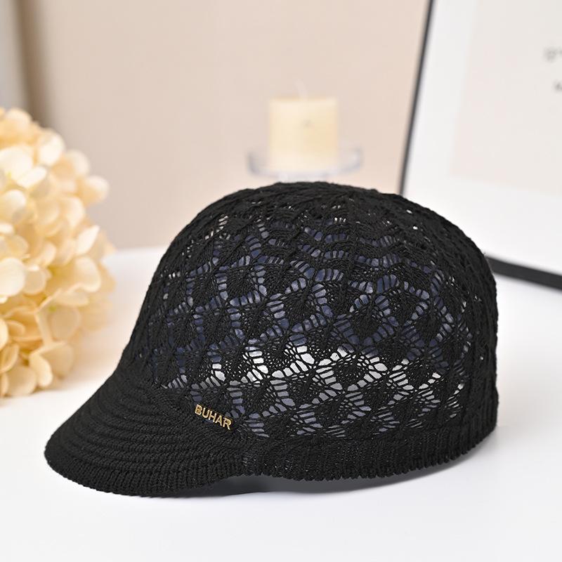 Новая шляпа женская весенне-летняя кепка дизайн ниша полая маленькая окружность головы женская шапка из ледяного шелка берет чёрный