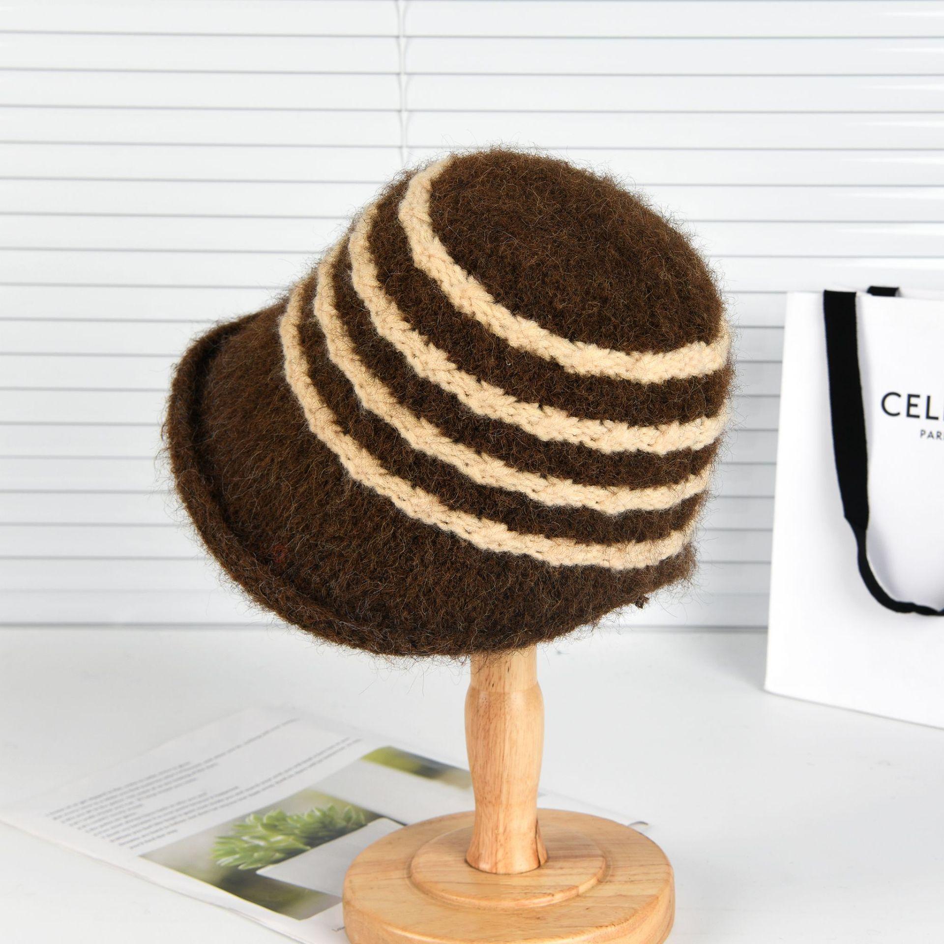 Новая шляпа рыбака, вязаная солнцезащитная шляпа с полосками контрастного цвета, весенне-летняя вязаная дышащая шляпа-ведро, женская корейская шляпа-ведро One Size