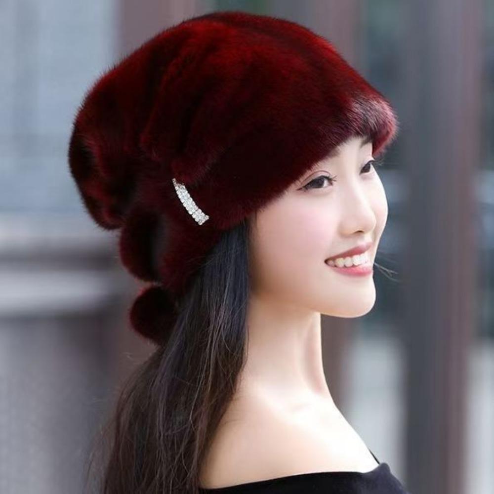 Новая шляпа-цилиндр из искусственного меха норки, меховая шляпа, женская зимняя модная теплая шляпа для среднего и пожилого возраста, трендовая шляпа burgundy