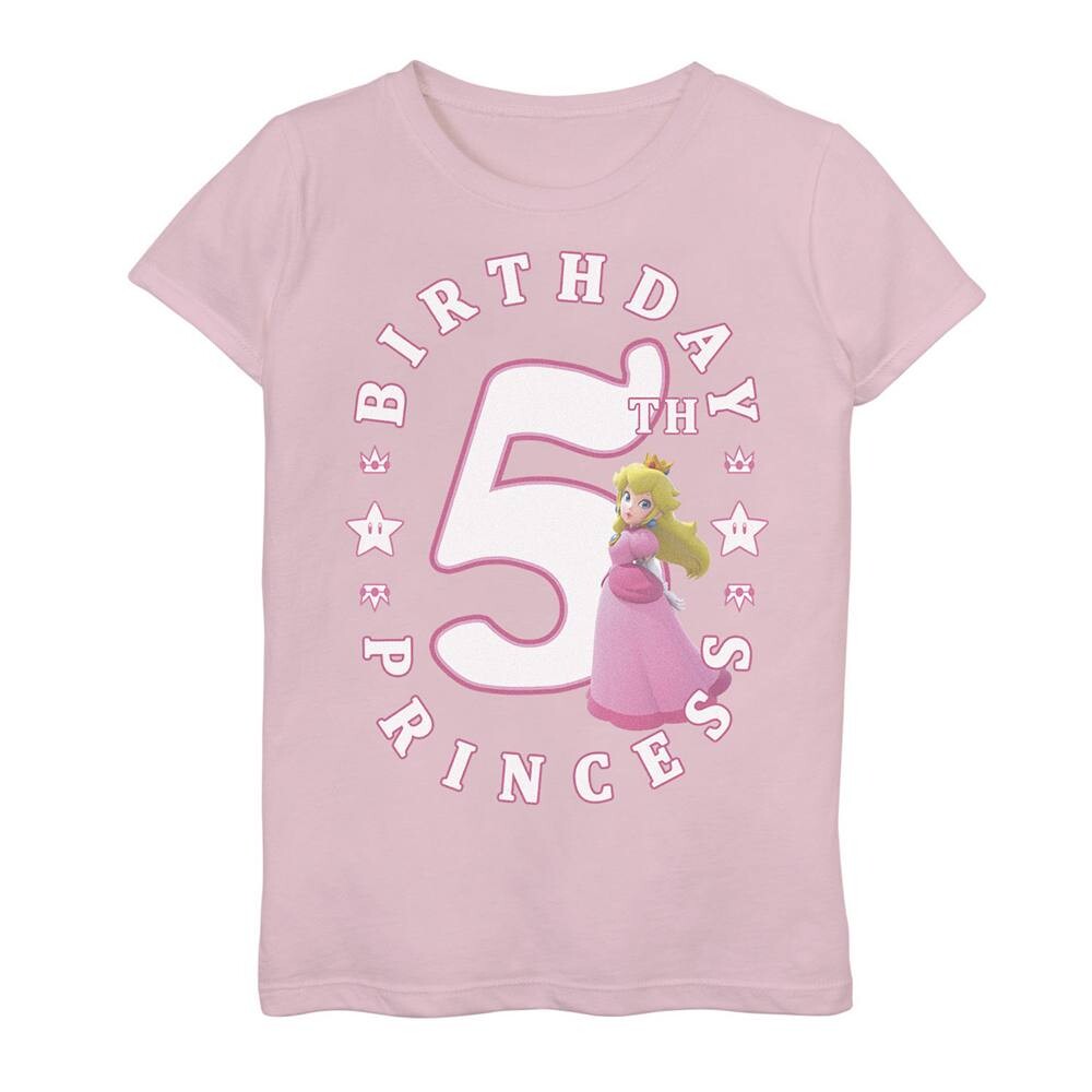 Футболка с рисунком принцессы «Принцесса Пич» для девочек 7–16 лет с портретом принцессы на 5-й день рождения Licensed Character, розовый