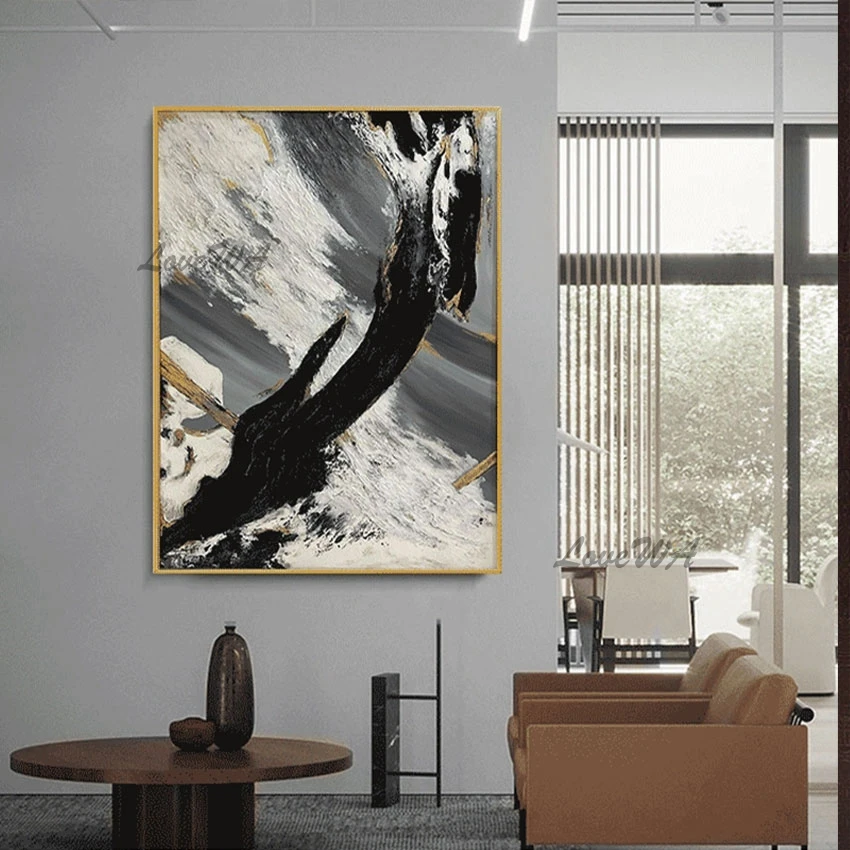 Новейшая абстрактная черно-белая акриловая картина ручной работы с ножом, художественная настенная Картина на холсте, картины без рамы, пре...