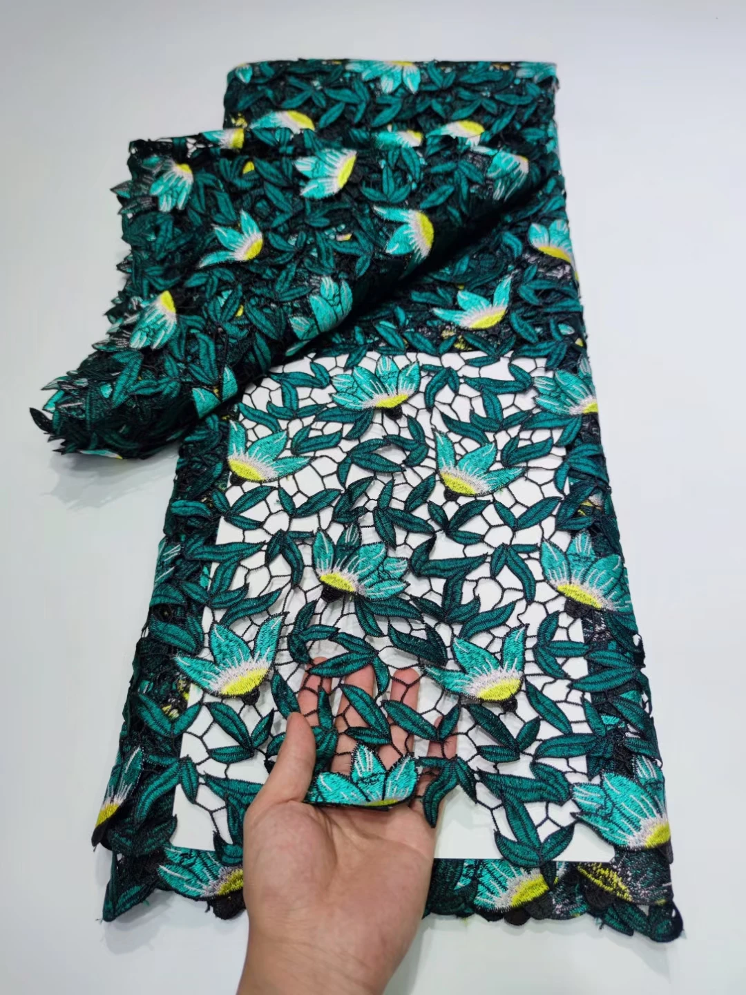 Новейшая африканская вышитая молочная шелковая ткань, высокое качество, роскошное растворимое Сетчатое кружево для вечернего или вечернег...