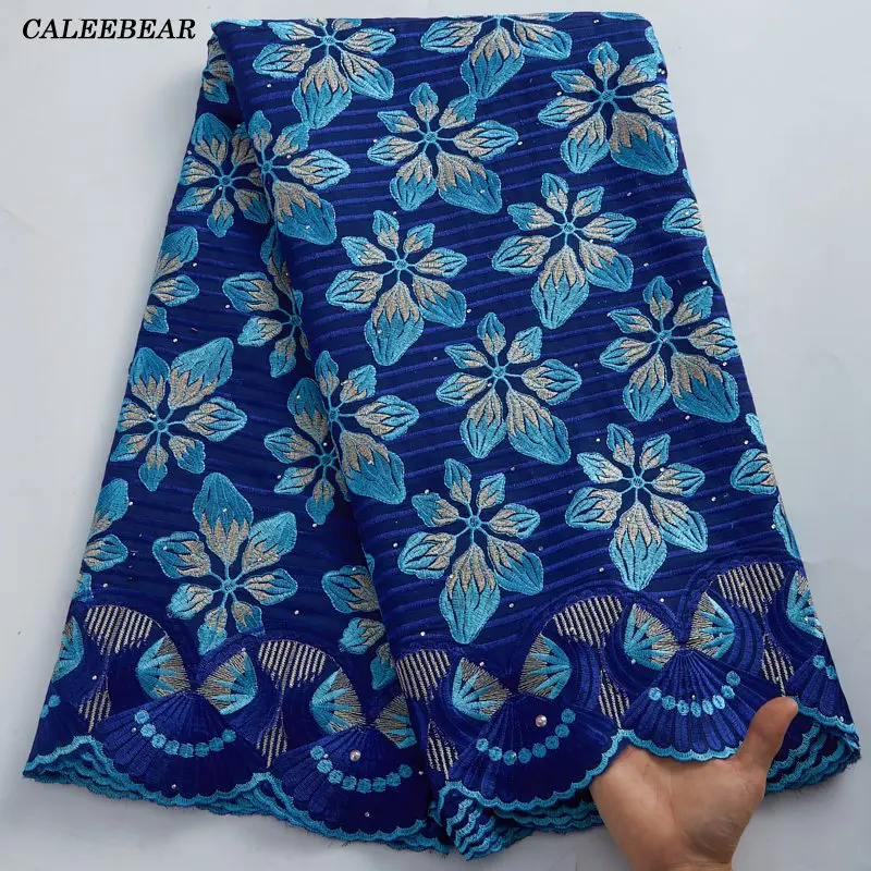 Новейшая африканская кружевная ткань 2022, Высококачественная кружевная синяя швейцарская сухая хлопковая ткань с вышивкой, кружево для женвечерние вечернего платья, для шитья S2777