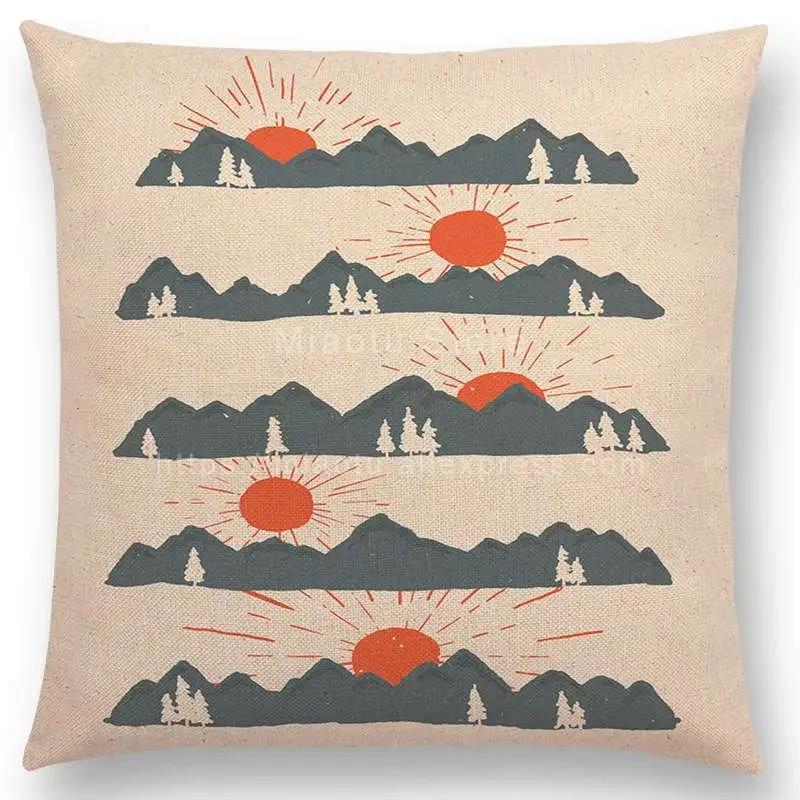 Новейшая наволочка Животные в лесу День и ночь Горы Солнце Луна Исследования Кемпинг Лиса Волк Наволочка 66x66cm