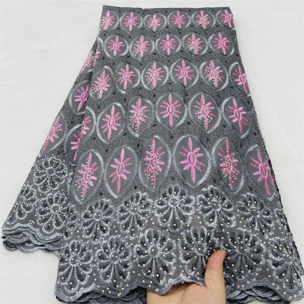 Новейшая швейцарская вуаль с кружевной вышивкой и камнями, французская кружевная ткань для праздничного платья, хлопковая вуаль 5 ярдов