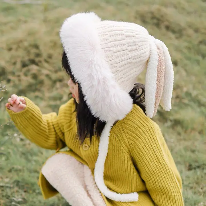 Новинка Зима 2022, легкая Роскошная модная детская шапка для девочек, белая утолщенная теплая вязаная модная бутиковая простая стильная шапк...