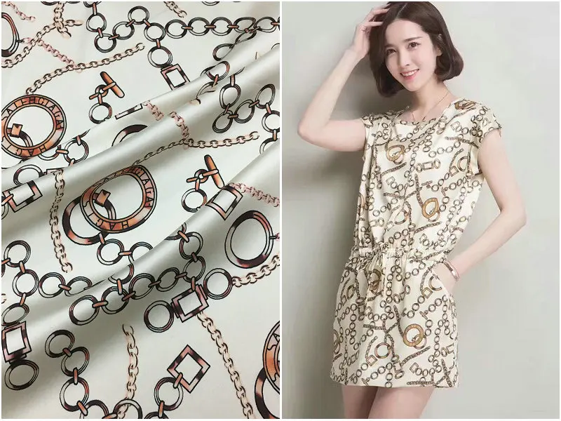 Новинка Тяжелая шелковая стрейчевая атласная ткань брендовая набивная рубашка из натурального шелка с принтом цепей женская модная ткань ...