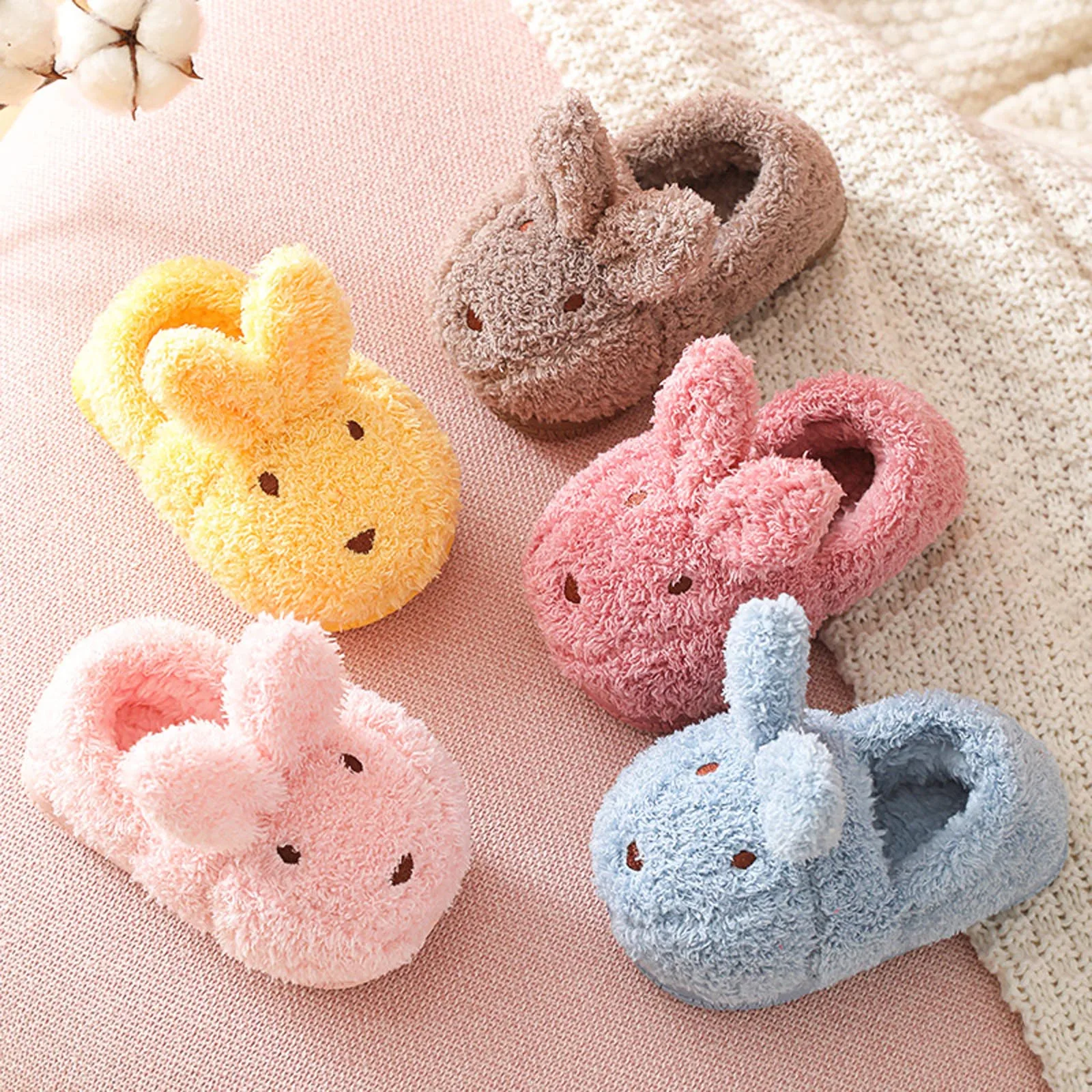 Новинка, зимние детские тапочки, шлепанцы с кроликом для маленьких девочек, плюшевые сланцы, домашняя обувь для маленьких мальчиков, теплые ...