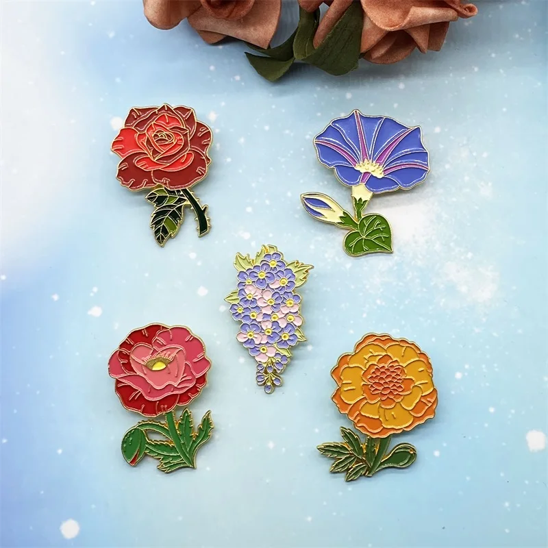 Новинка, милая романтичная яркая брошь из сплава с эмалью в виде цветка, изысканная брошь с изображением розы, Утренней славы, цветочный значок с растительными мотивами, подарочные украшения