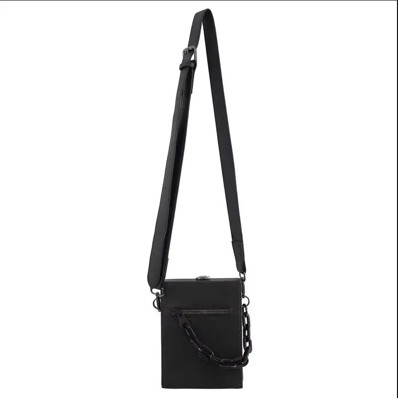 Новинка, мужская сумка 2023, сумка через плечо, модная Водонепроницаемая маленькая металлическая сумка на цепочке, Кожаная поясная сумка чере...