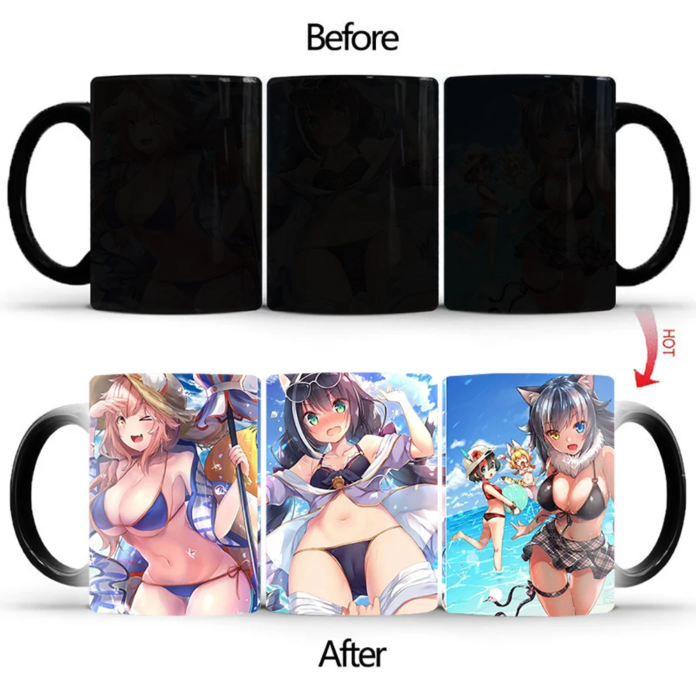 Новинка, оригинальная керамическая посуда для напитков с 3 красивыми девушками, меняющая цвет от тепла, чайная чашка, кофейные кружки, подар...