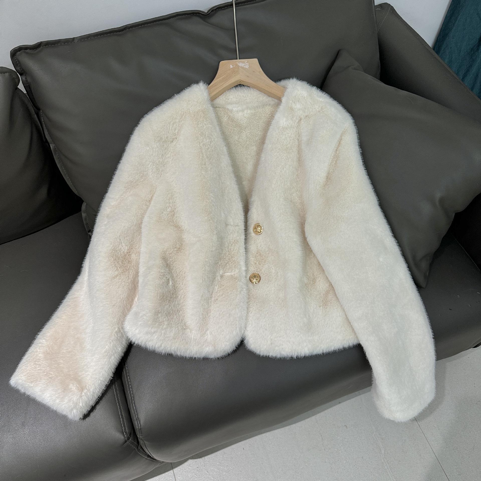 Новинка осени и зимы, новая короткая меховая шуба из золотистой норки с V-образным вырезом, экологически чистая шуба из бархата One size fits all