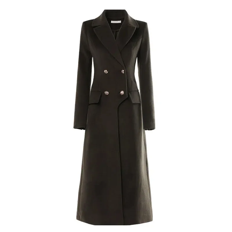 Новинка сезона осень-зима 2022, шерстяное пальто, женское длинное стильное пальто выше колена, модная атмосферная темпераментная Толстая шер...
