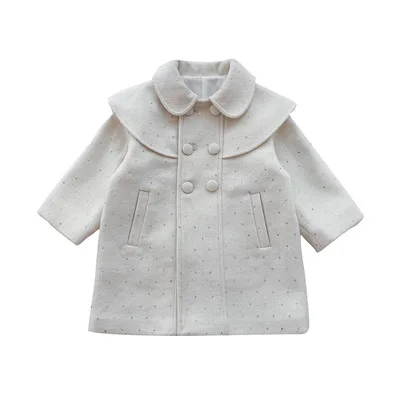 Новинка 2021, Корейская зимняя детская одежда, плотное шерстяное пальто для девочек, детская шерстяная куртка с круглым воротником для малень...