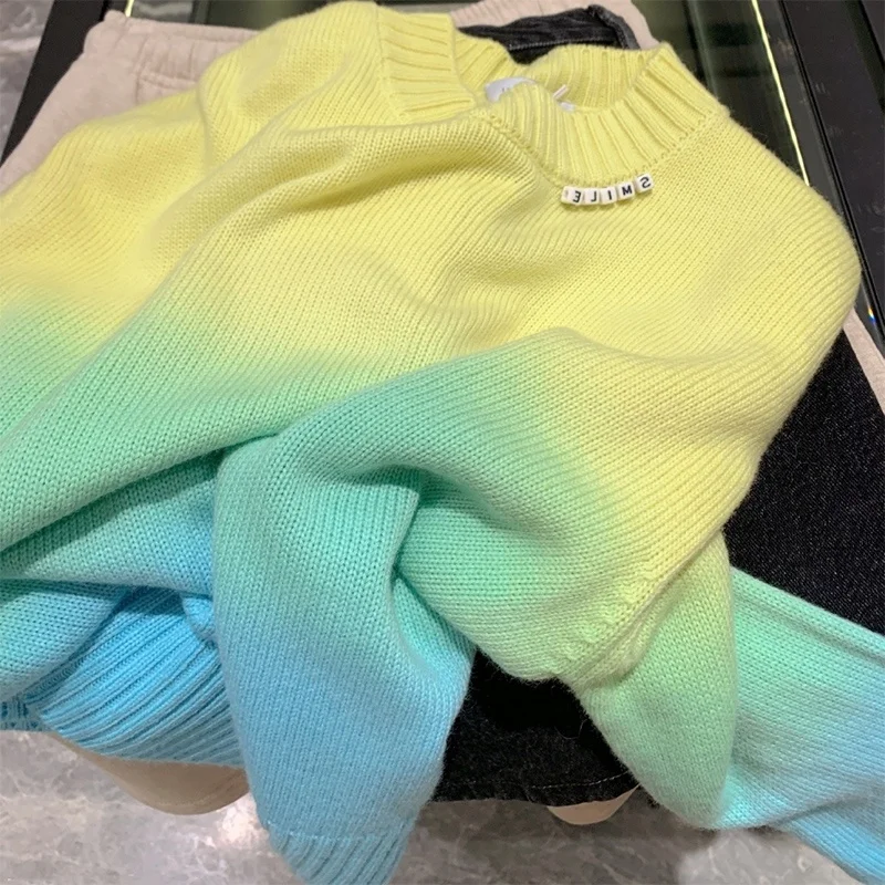 Новинка 2021 блузка для ранней осени Высококачественная шикарная очень красивая блузка Тяжелая промышленная вязаная рубашка с градиентом же...
