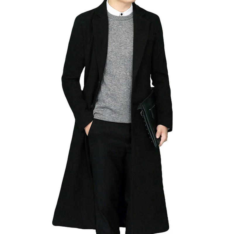 Новинка 2021, мужское зимнее шерстяное пальто/простая черная однобортная деловая теплая ветровка из смешанной шерсти, Брендовое зимнее пальт...