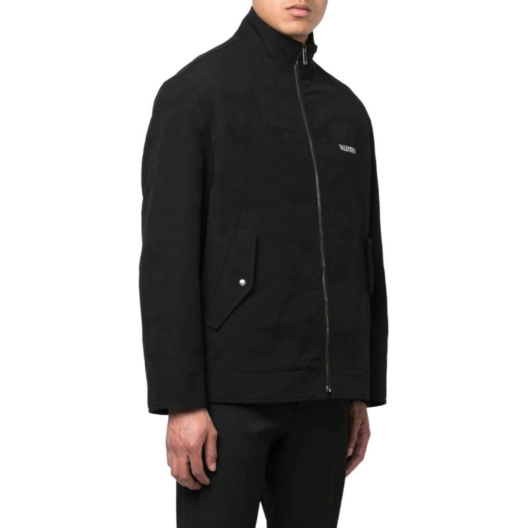 Логотип Детализированная Застёгивающаяся на Молнию Длинная Куртка Valentino, Чёрный, Черный, Логотип Детализированная Застёгивающаяся на Молнию Длинная Куртка Valentino, Чёрный