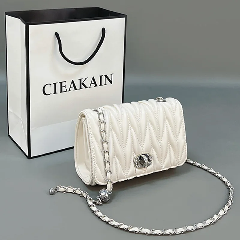 Новинка 2022, летняя модная универсальная плиссированная сумка-мессенджер на одно плечо Стразы с цепочкой, Высококачественная вечерняя сумк...
