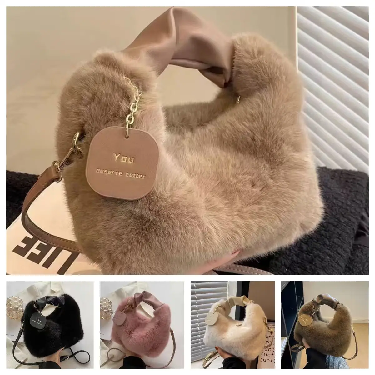 Новинка 2023 года, плюшевая сумка для женщин, модная осенне-зимняя текстурированная сумка, большая вместительная универсальная нишевая женская сумка через плечо с цепочкой