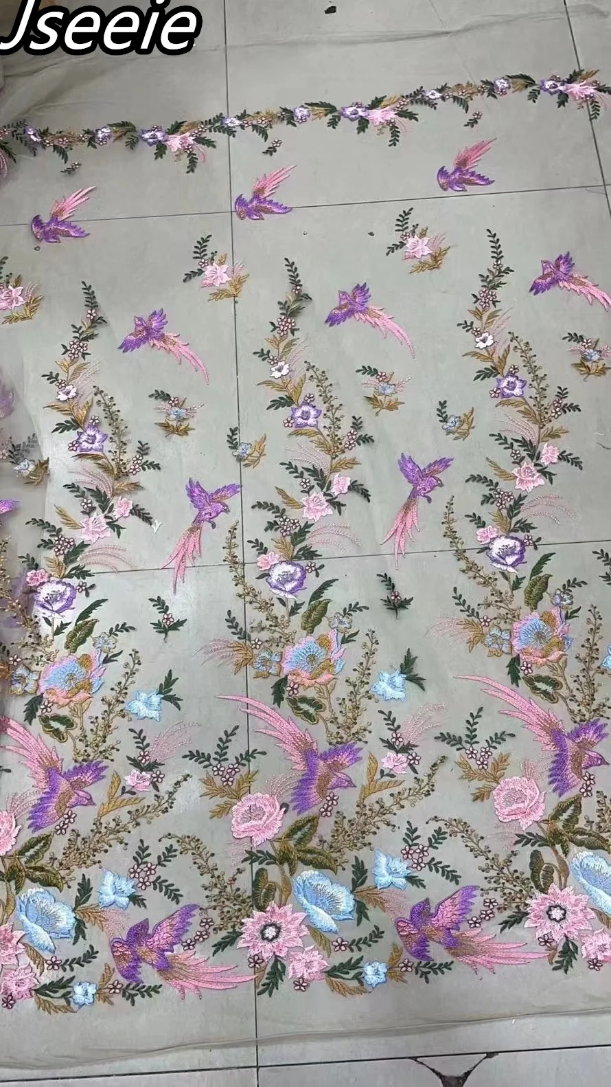 Новинка 2023, сетчатая кружевная ткань с вышивкой, розовое фиолетовое платье-Ципао, модное тяжелое промышленное платье с вышивкой, весна