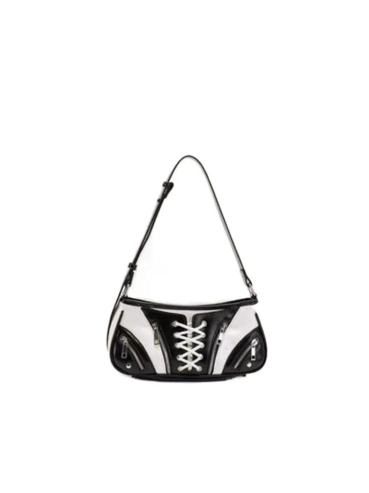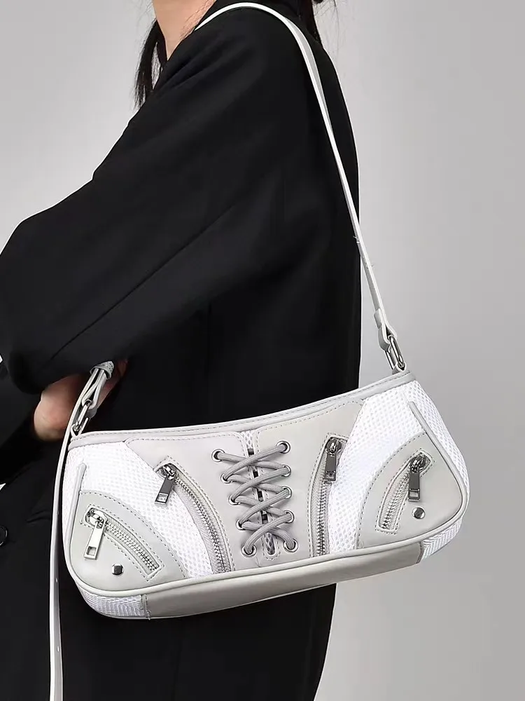 Новинка 2023, сумка для подмышек острых девушек, универсальная модная мотоциклетная сумка на одно плечо со скошенными лямками, черно-белая Милая крутая Сумка G