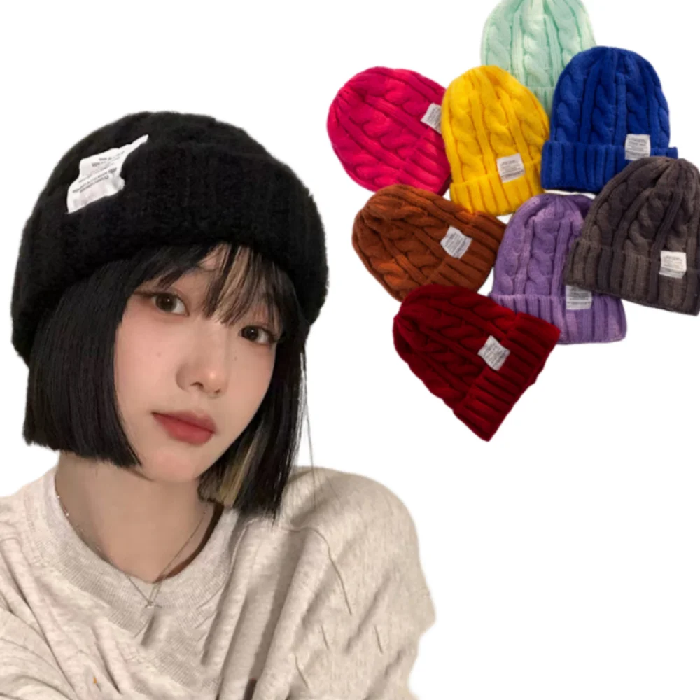 Новинка 2023, шапки-бини, Зимняя шерстяная вязаная шапка, Женская Шапка-бини, шапка для пары, теплая плотная модная однотонная женская шапка-пуловер