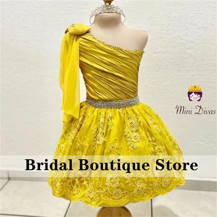 Новинка 2024, желтые платья для девочек с цветочным принтом на одно плечо, яркое платье для маленьких девочек, платье на день рождения для первого причастия