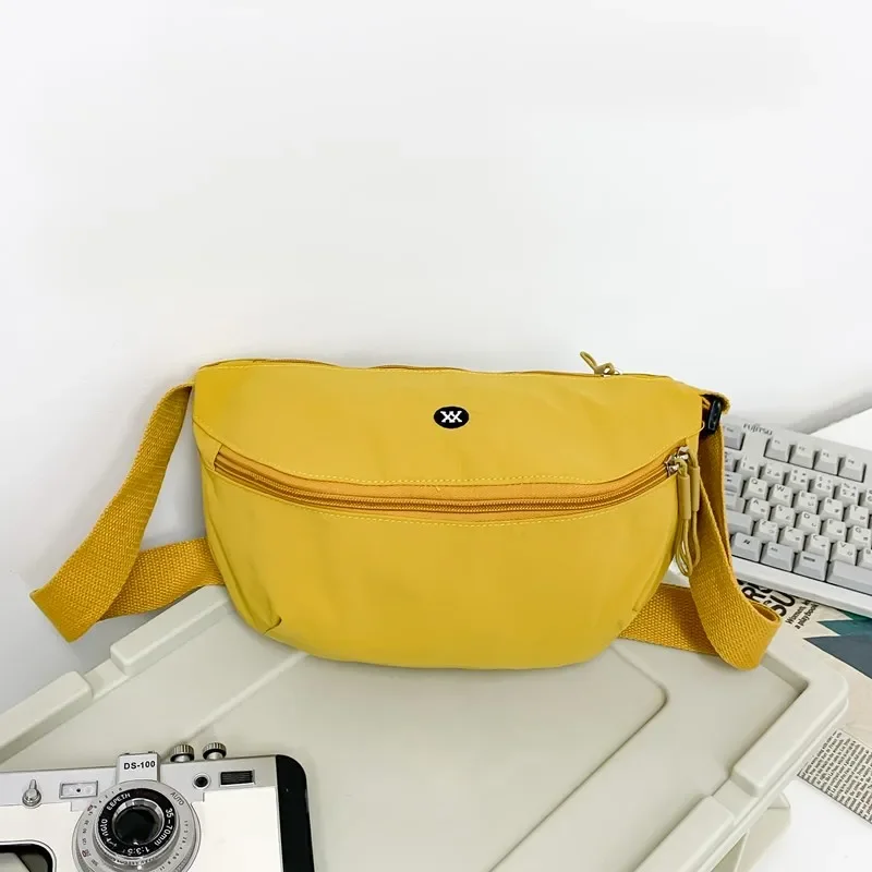 Новинка 2024, нейлоновая поясная сумка на молнии, однотонная, простая, нейтральная, повседневная нагрудная сумка, мягкая универсальная сумка через плечо для пригородных поездок
