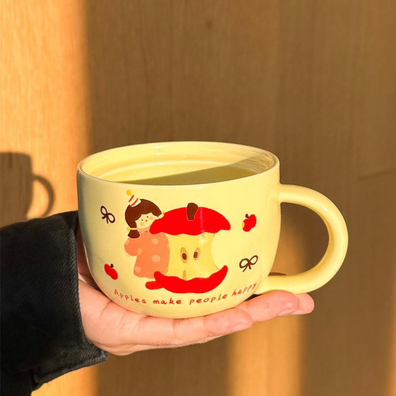 Новогодний подарок на день рождения Высокоценная милая чашка для воды в виде яблока Подруге Керамическая кружка с крышкой и ложкой Подарочная коробка 401-500ml