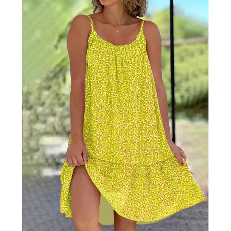 Новое большое платье с цветочным ремнем в европейском и американском стиле S-5XL 2XL жёлтый
